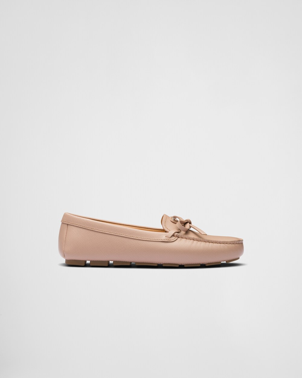 Powder Pink Saffiano Leather Driving Loafers Prada
